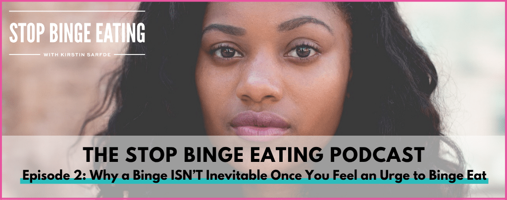 In order to stop feeling the urges to binge, you have to stop doing what is causing you to feel the urges, which is either being overly restrictive with your food or using food to control or escape your emotions, and I went into more detail about those two things in episode one and will be going into even more detail in future episodes of this podcast. So, you’re going to work on those two things in order to stop feeling urges to binge, which is absolutely possible for you.